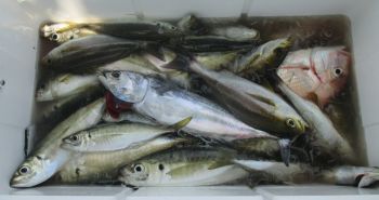 | 高知市からのお客様 武井さん・枝重さん 鈴木さん・林野さん イサキ竿頭・・・67匹 真鯛・チダイ レンコ・ベイケン シイラ・アジ 早めに納竿する 雨の中お疲れ様でした 水温23.4度 |
