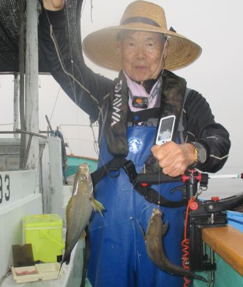 | 愛媛県からのお客様 秋山さん・中沢さん 梶さん イサキ竿頭・・・60匹 真鯛・チダイ レンコ・アジ 水温23.6度 |